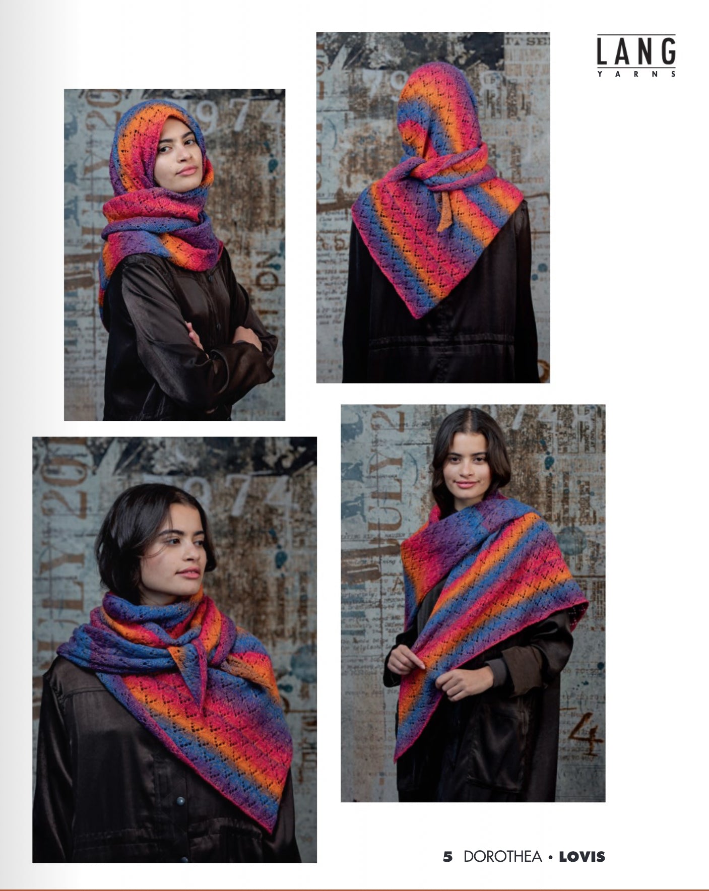 Punto 63 présente des motifs qui mettent en valeur les magnifiques dégradés de Lang Yarns Lovis.